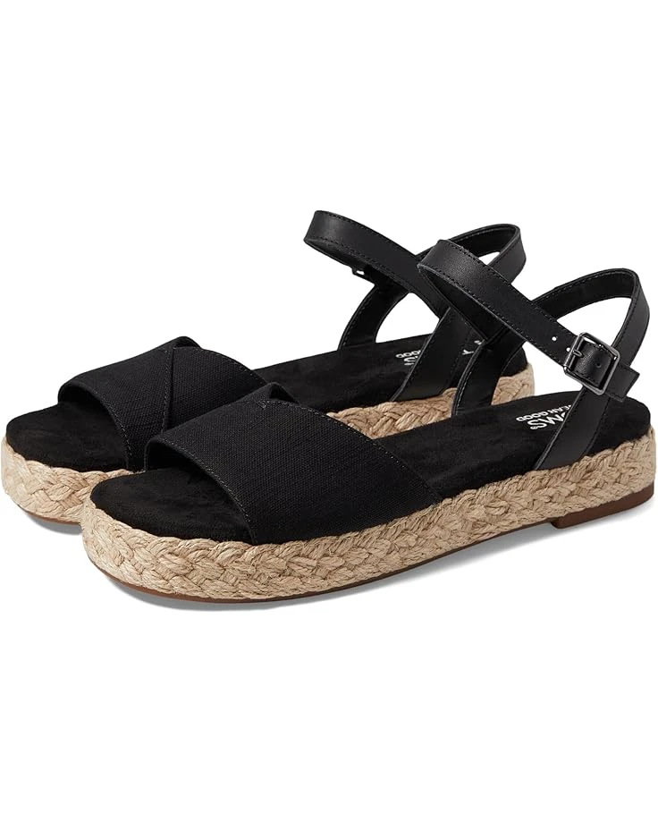 - Head out to places feeling comfortabke and chic by opting for the TOMS® Abby Sandals, that pair well with versatile outfits. The sandals are crafted with a textile & leather mixed upper, polyester lining, and an OrthoLite® Eco X40 Hybrid™ insole with Microfiber footbed cover. The ankle strap with adjustable buckle is designed to provide a secured fit and the midsole wrapped in jute elevates the look.
