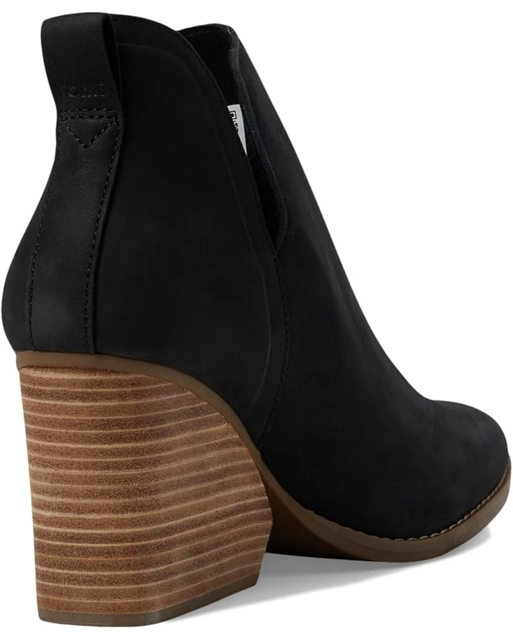 - Walk into effortless style donning TOMS® Eliza, where chic meets comfort! This ankle-high, slip-on sculpted wedge boot features a luxe leather upper and soft polyester lining for a perfect fit. The PU insole and TPR outsole offer all-day cushioning and support, while dual V cutout details add a trendy twist. The stacked leather-wrapped wedge elevates your look with a touch of sophistication.