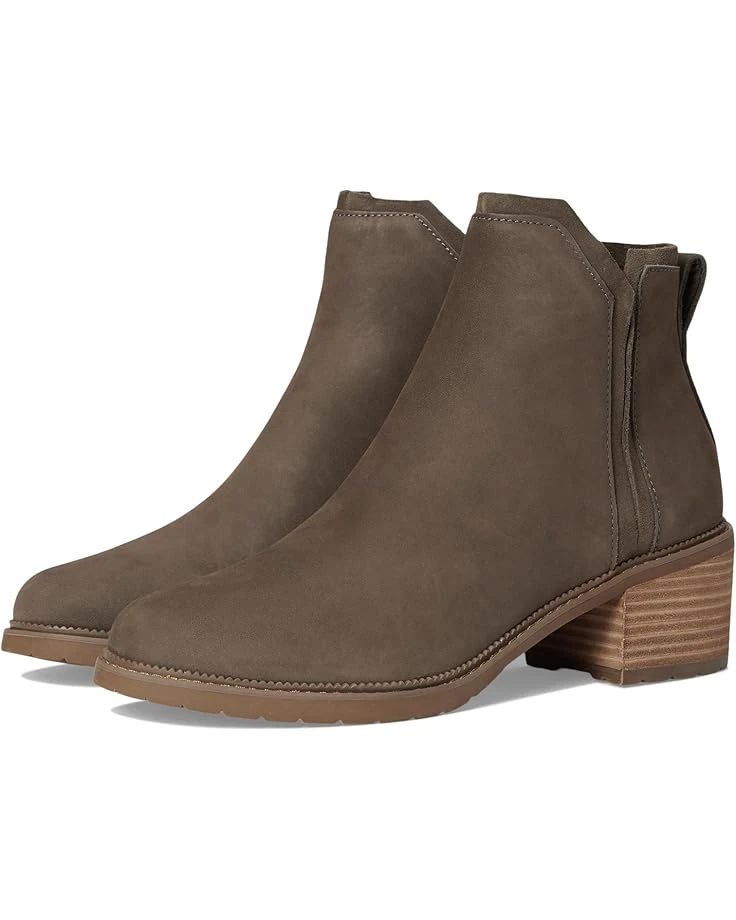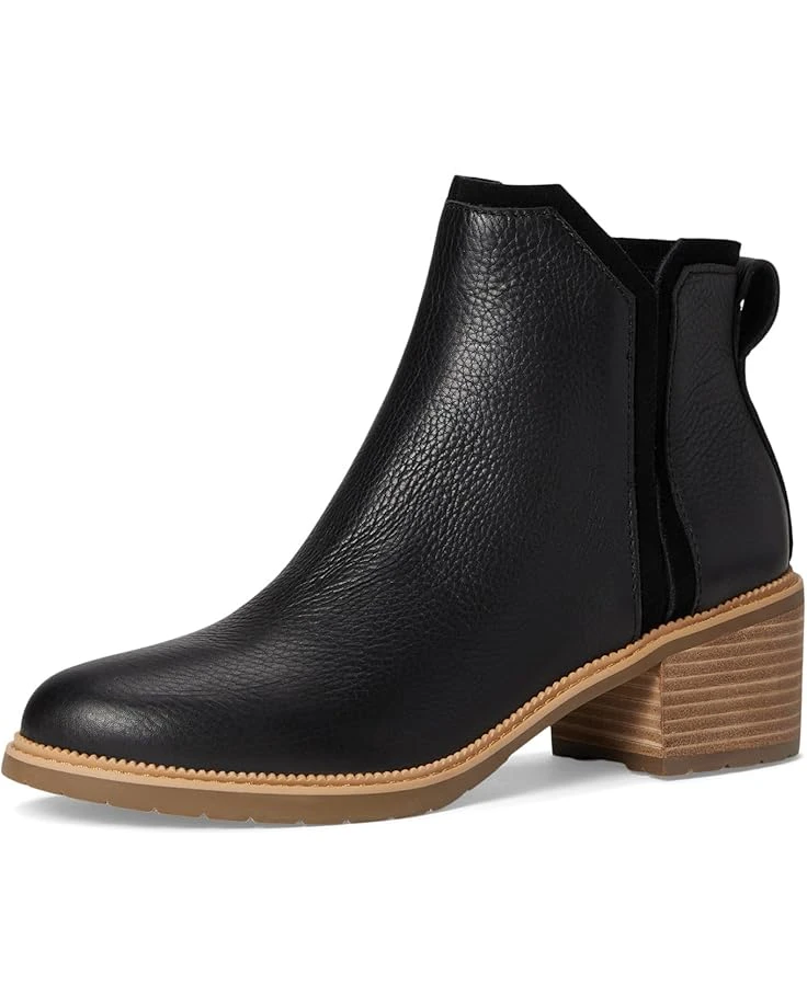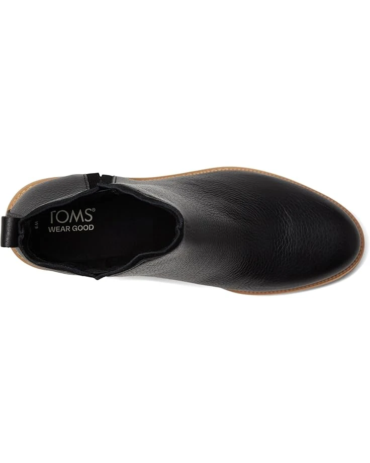 - Unique and exquisite, the TOMS® Hailey is a masterpiece on display. Crafted from water resistant leather upper, polyester lining, and polyurethane insole, this pair of boots features round toe, pull-on construction, back pull tab, water resistant suede underlay details, and casual block heel boot with mini lugged sole.