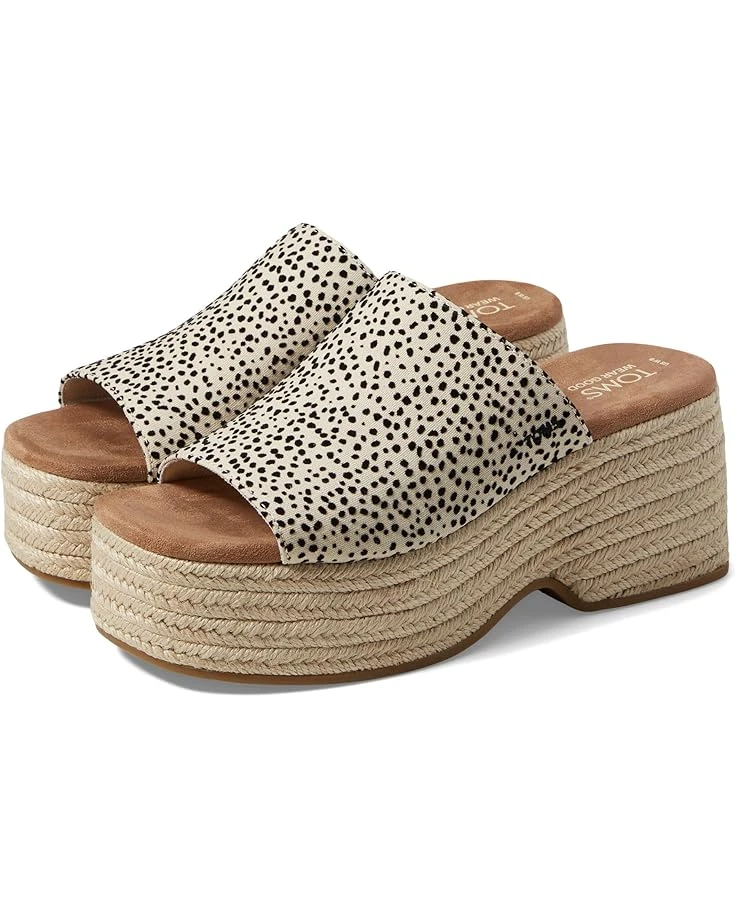 - Walk in comfort and style by wearing the TOMS® Laila Mule sandals. The slip-on style sandals have an open-round toe design, high platform heels, and a sleek silhouette. These platform heels have textile cotton upper, high rebound comfort OrthoLite® Eco X40 Hybrid™ insoles, and polyester lining for added comfort.