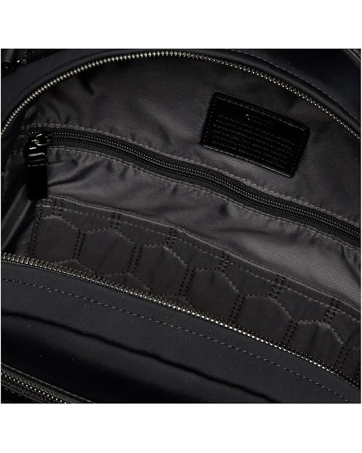 - Interior includes zippered pocket, three open pockets, two card pockets, two pen loops, and key leash.