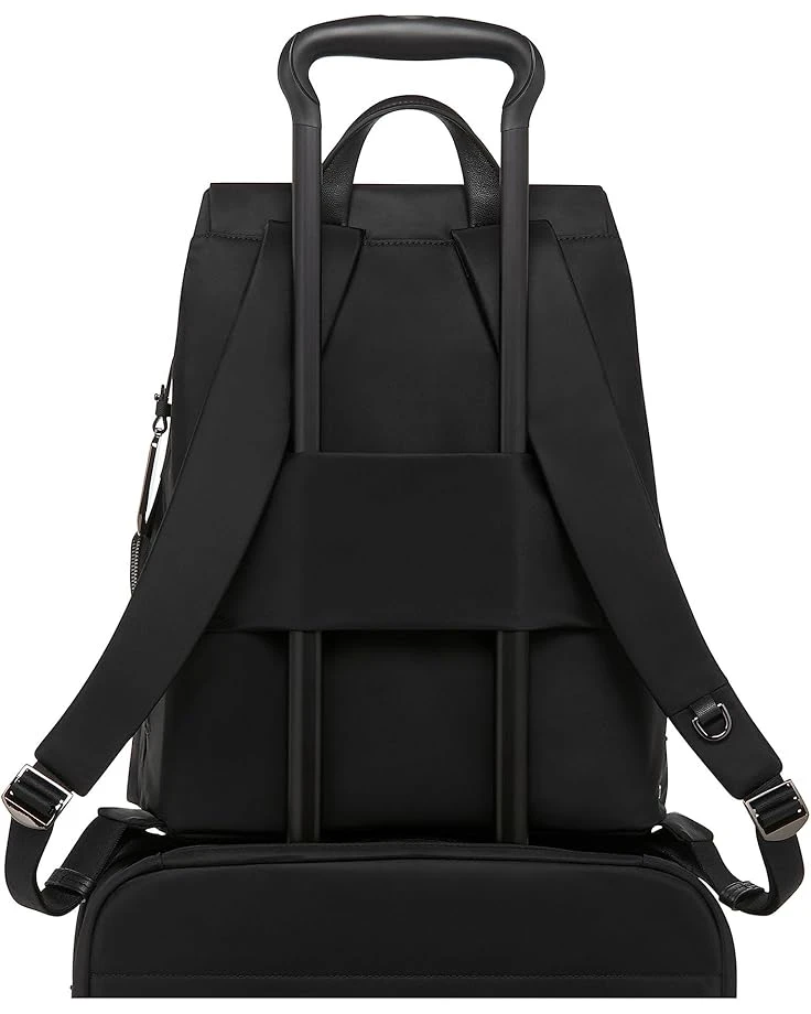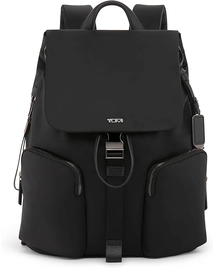 - Commute in style and with confidence carrying the Tumi® Ramsay Backpack. The spacious bag has a drawstring closure to the main compartment with speed clip closure. It has two front U-zip pockets, a quick-access phone pocket, a leather top handle, a side zip entry to the main compartment, side zip access to collapsible interior water-resistant water bottle pocket, add-a-bag strap, and a padded adjustable backpack straps with d-ring compatible with select tumi® accessories.