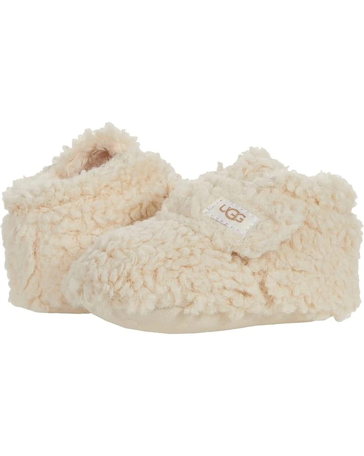 - Microfiber fleece upper is curly, woven, and oh so soft and fuzzy. Perfect for the littlest feet, your infant will love the feel of these teddy-bear soft booties.