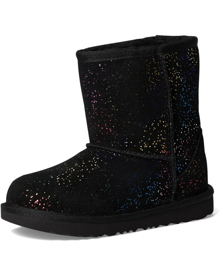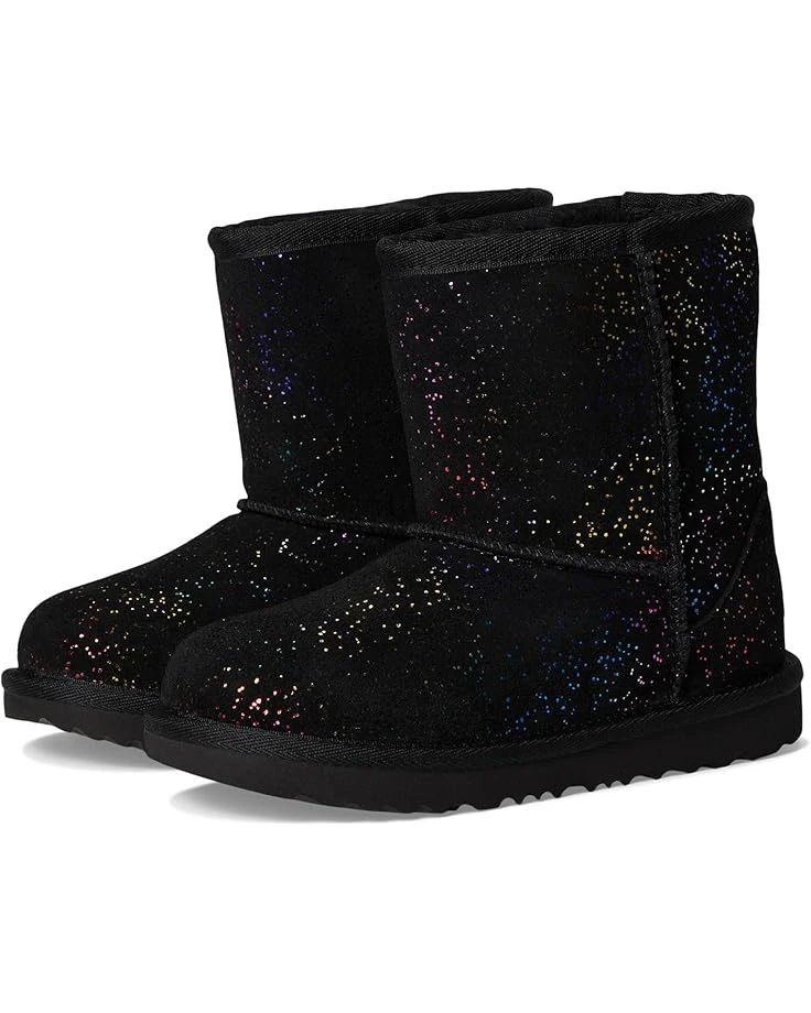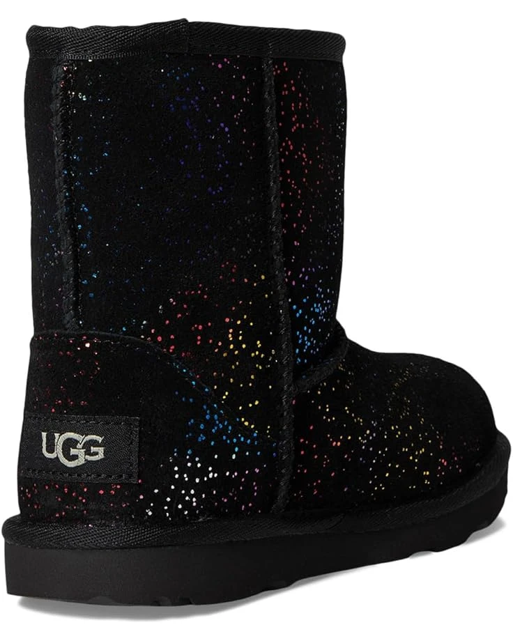 - The UGG® Kids Classic II Shimmer Sky gets decorated with shimmery specks that look like a starry sky. This style features everything your kids love about the original: soft suede upper and UGGplush™ interior, plus just the right amount of sparkle. It comes with round toe, foam footbed, pull-on style, and brand detailing on the heel counter.