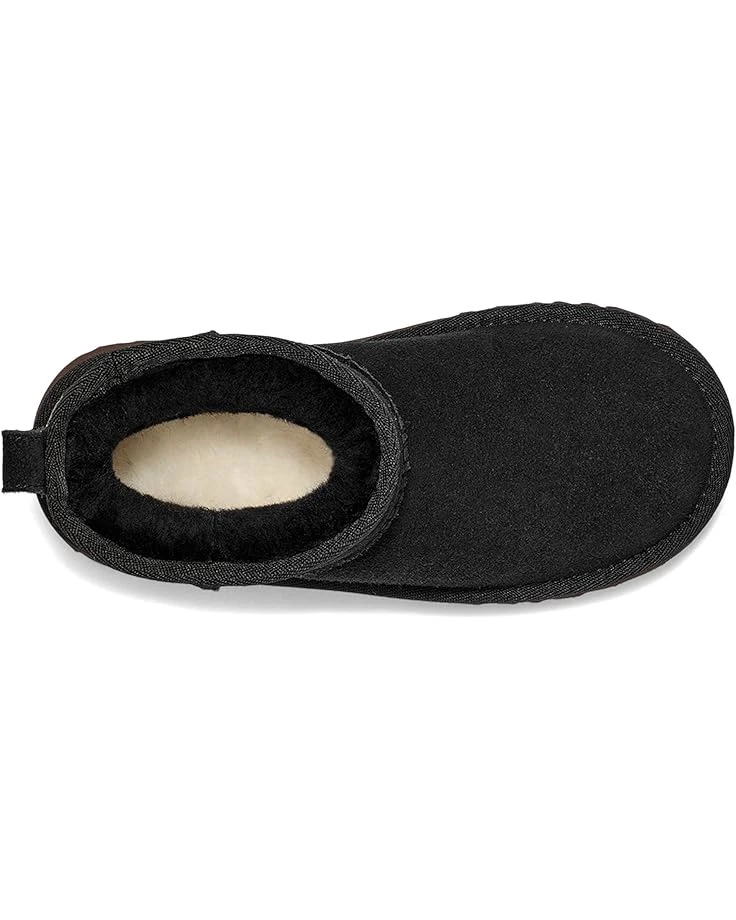 - For your little fashionistas, the UGG® Kids Classic Ultra Mini New Heights boots take the comfort of the Classic Boots and bring it to new heights. The suede upper, UGGplush™ 60% upcycled wool, 40% TENCEL™ Lyocell® lining and insole, and a foam footbed keep your kid’s feet comfortable and warm all day. These mini boots are perfect for any dressed-up occasion.