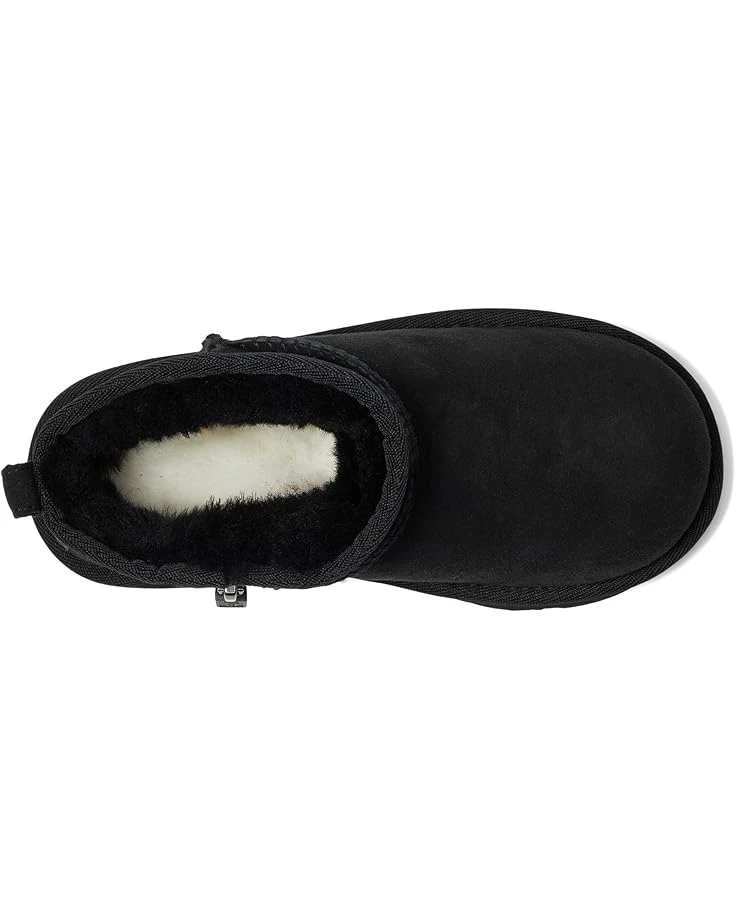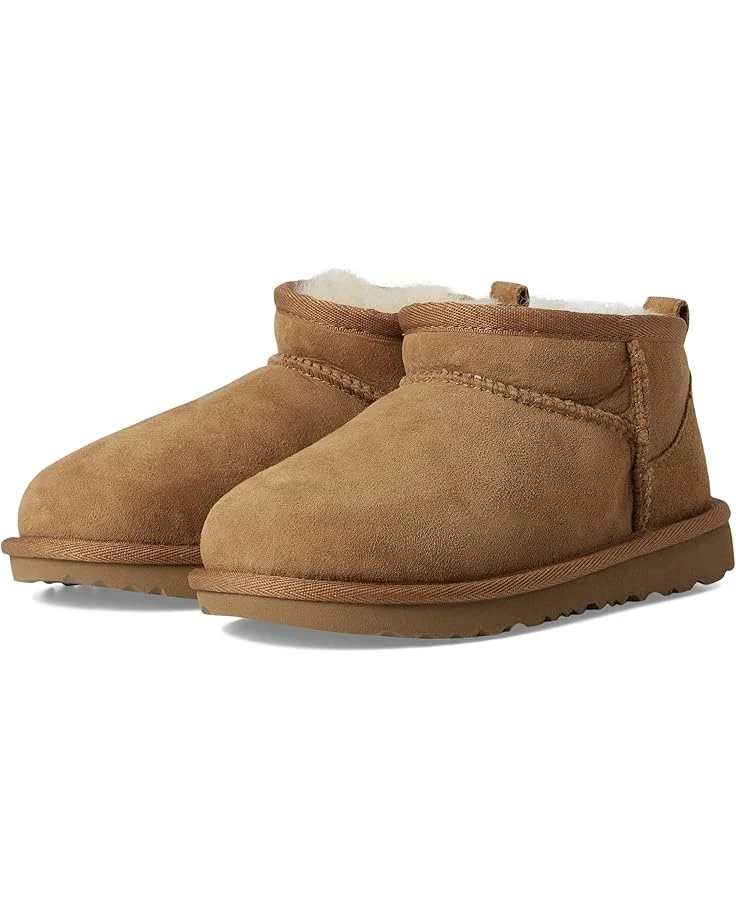 - Crafted with a topically applied water-repellency treatment, the UGG® Kids Classic Ultra Mini Boots come with a twin-face sheepskin upper which offers both comfort and warmth. The overlock stitch detailing on seams adds to the structure and keeps them firm. Lounge around in these boots and stay warm throughout.