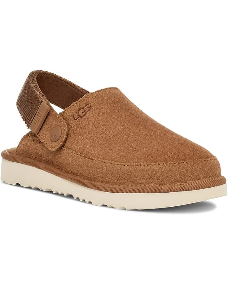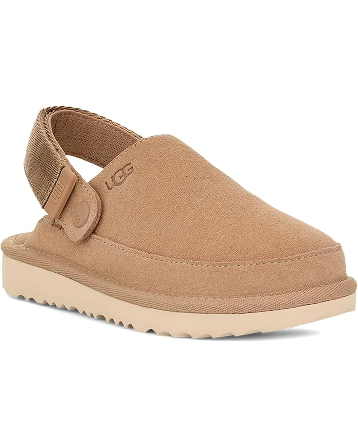 - Provide your kid comfort with every step with the UGG® Kids Goldenstar Clog–a playful twist on the iconic classic boot. Crafted for comfort, these clogs feature an antimicrobial-treated textile lining, keeping little feet fresh. The adjustable heel strap ensures a secure fit, complemented by a convenient hook-and-loop closure.