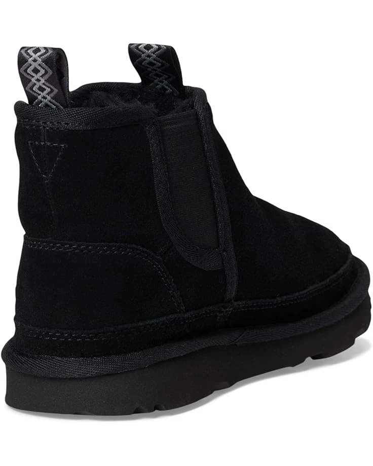 - The UGG® Kids Neumel Chelsea boots are designed to bring comfort to your feet for a prolonged duration. The round-toe shoes have ankle and heel pull-on tabs for easy donning and doffing. The slip-on style shoes have cow suede upper with suede lining and the foam footbed offers comfortable cushioning for all-day wear.